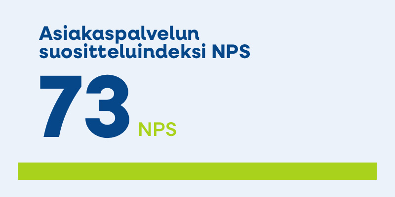 Viime vuonna panostimme vahvasti asiakaspalautteen keräämiseen. Otimme käyttöön NPS:n (Net Promoter Score) suositteluindeksin, jonka avulla saimme arvokasta kuukausittaista palautetta asiakaspalveluumme soittaneilta asiakkailta kerran vuodessa tehtävän asiakastyytyväisyyskyselyn rinnalle.